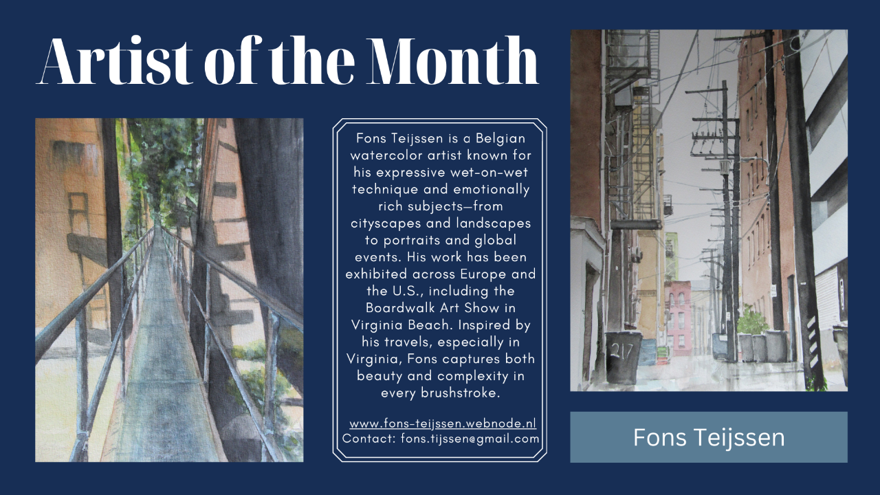Ik kan u aankondigen dat ik ben uitgenodigd voor een eerste solotentoonstelling In Virginia US. Van 2 mei tot 30 mei 2025 zullen een 25 aquarellen van mij te zien zijn n het Virginia Eye Institute in Richmond.